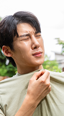다한증(多汗症)은 정상적인 체온 조절 범위를 넘어서 과도하게 땀을 흘리는 상태를 말합니다. 특별한 질병 없이 나타나는 경우도 있으며, 일상생활이나 사회적 활동에 지장을 줄 정도로 땀이 많이 나는 증상입니다.